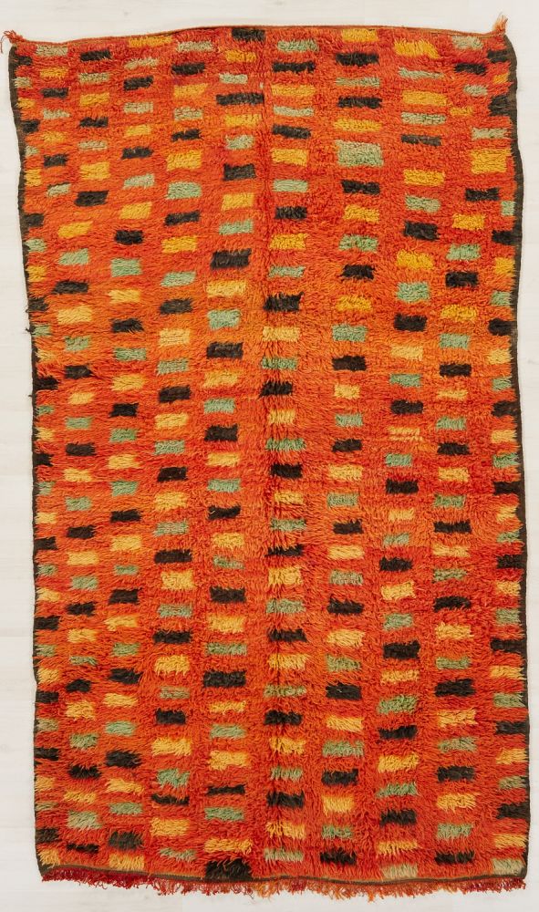 Upptäck de populära och odisciplinerade semi-antika Beni Ourain-mattorna med den lite längre, pälsliknande luggen som gör dem så sköna att gå på. Med traditionella marockanska geometriska mönster, som de karakteristiska stora diamanterna, är de äkta mattorna från berberstammen Beni Ourain såväl stilrena som lättplacerade.