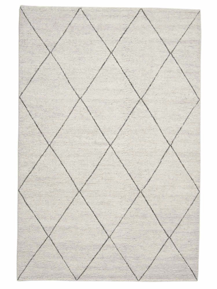 Casablanca 170x230cm, White & Grey är en modern, stilren matta med ett traditionellt marockanskt, geometriskt mönster i en vit botten färg. Tack vare mixen av len bambusilke och varm ull får du en både mjuk och rejäl matta.