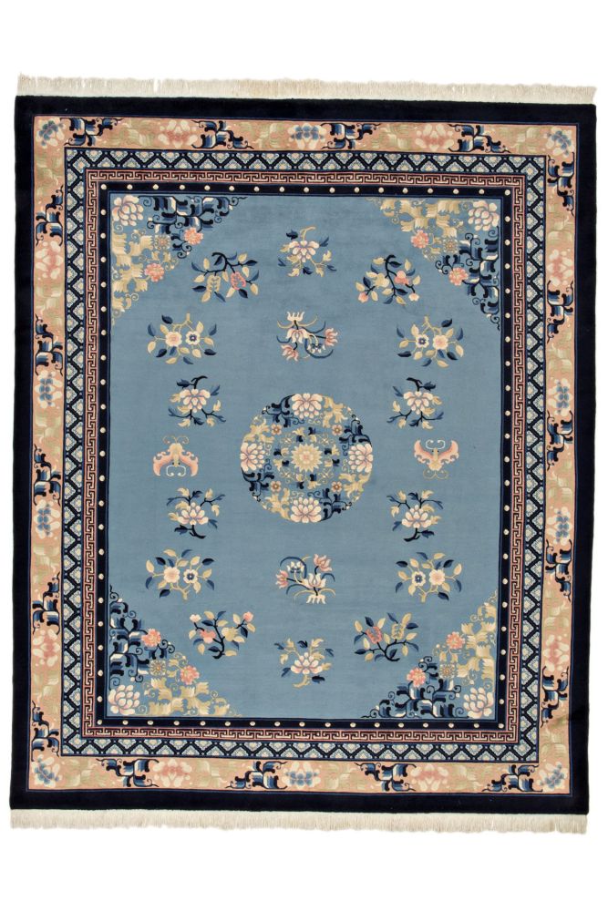Låt ståtlig bambu ge dig en lycklig ålderdom. Få många barn med det saftiga granatäpplets kraft, eller ett lyckligt äktenskap med ständiga fjärilar i magen. De dekorativa inslagen i kinamattorna har nästan alltid ett symboliskt värde. De vackra kinamattorna har en modern look och en harmonisk färgskala. De är ofta enfärgade (blå eller beige/senapsgula) utan bård, relativt tjocka och knutna i fin, mjuk ull.Motiven härrör från gamla traditioner (kinesiska, taoistiska och buddistiska) och har en begränsad repertoar: stiliserade tecken, till synes vardagliga ting (som böcker, fjärilar och blommor) men även fantastiska djur, som drakar och enhörningar. Det vanligaste motivet är skrivtecknet för lycka, shou, som varieras i det oändliga. När man mäter knuttätheten på kinamattor görs detta i ”lines”, vilket motsvarar antalet varptrådar på en fot av mattans bredd. 90 lines, till exempel, motsvarar cirka 90 000 varptrådar per kvadratmeter.
