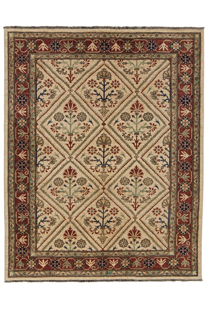 De växtfärgade Dehbafmattorna med sin behagliga och naturliga färgton är knutna av fet, handkardad och -spunnen afghansk ull. Upptäck de naturliga skiftningarna och nyanserna som endast växtfärgat garn av finaste ullkvalitet kan skapa. En modern matta med ett historiskt mönster och antikfinish.