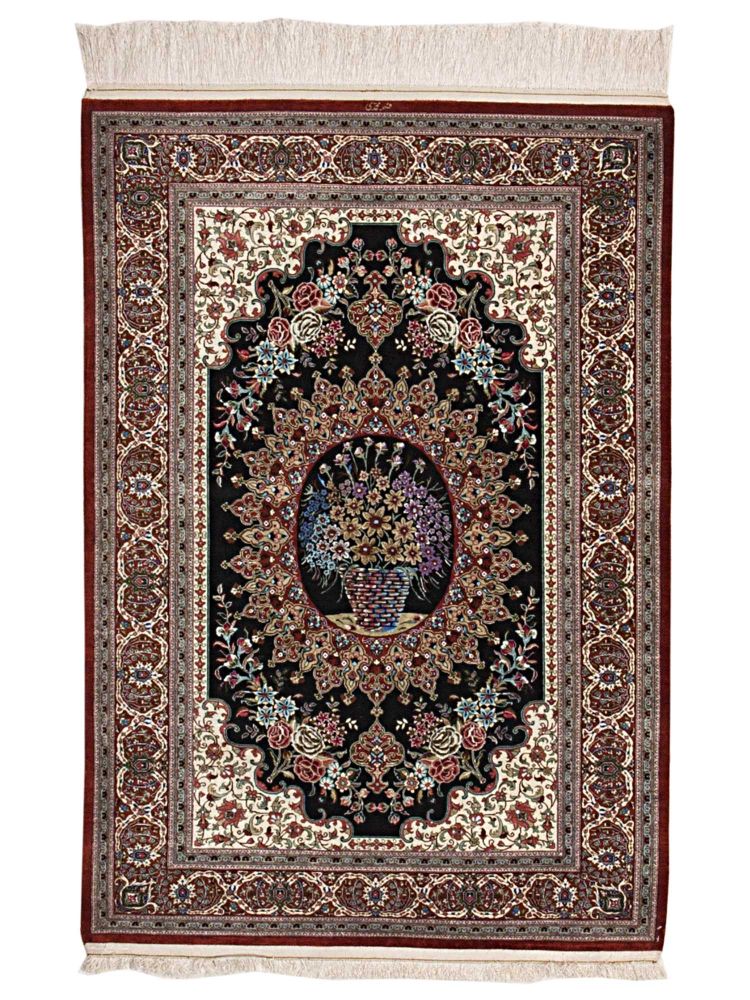 Här hittar du våra Ghom-mattorna av rent silke. Glansiga, mjuka och följsamma mattor som andas elegans ut i fingerspetsarna. Trots att man bara har knutit mattor i Ghom i lite mer än 100 år har de ett eget och typiskt formspråk: medaljongmönster och figurala mattor med djur och växter är vanligt, liksom trädgårdsmönster.