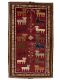 En nomadmatta knuten av kashgaifolket. De stadiga mattorna är knutna helt i ull och de talrika mönstren är deras egna, vävda ur minnet. En vanlig design är den så kallade hebatlu-designen med en central medaljong, upprepad i alla fyra hörnen. Andra har en hexagon- eller diamantformad medaljong, inuti en större medaljong, med fyra krokar.