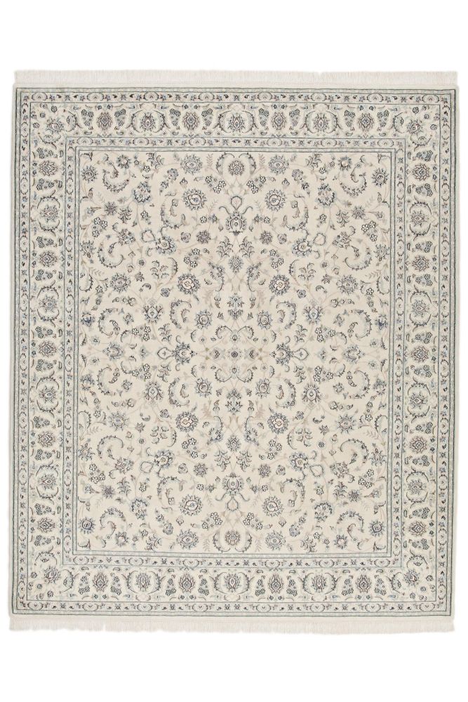 Exklusiva, ljusa och eleganta... Nainmattorna är utsökt fina, tunna och tätknutna mattor av högsta kvalitet. De lite mer exklusiva Nainmattorna är knutna i ull på silkesvarp eller till och med helt i silke. Nainmattorna är ljusa, i svala blåa toner med mycket vitt. Design och storlekar varierar, men ett slingrande blomstermönster är typiskt. Nain Tabas är en matta i lite grövre ull som är en utmärkt, slitstark bruksmatta.