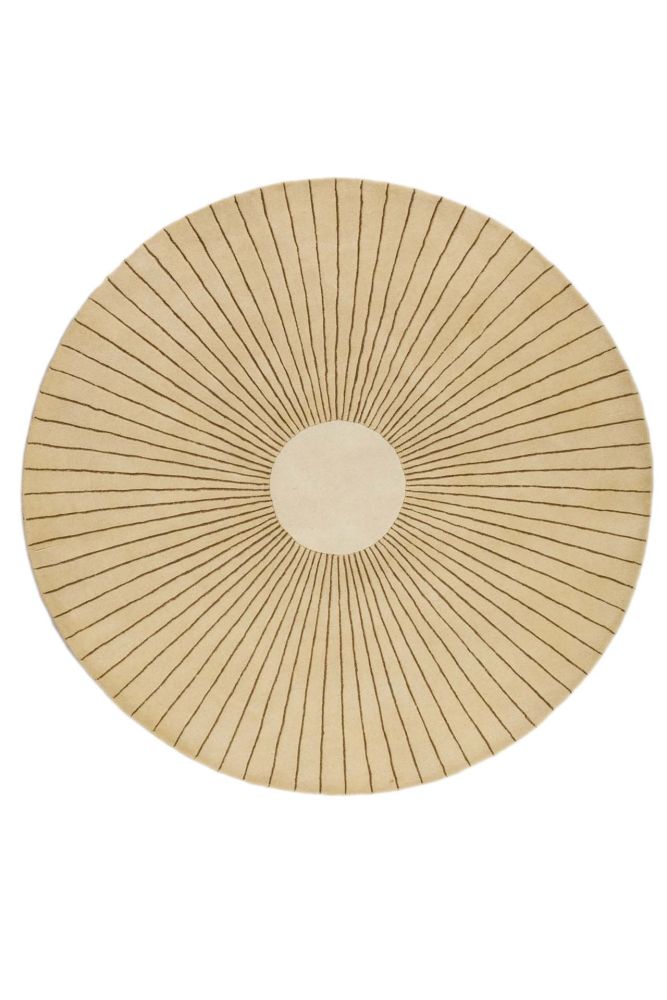 Vår runda ullmatta Sun är handtuftad med ett dekorativt, klippt solmönster i relief. Den stilrena mattan har ljusare ”sol och strålar” som kontrasterar fint mot den mörkare bakgrunden. Mattan som är tjock ger en skön värmande känsla under fötterna. En rund matta höjer mysfaktorn i hemmet och är det självklara valet under ett runt matbord.